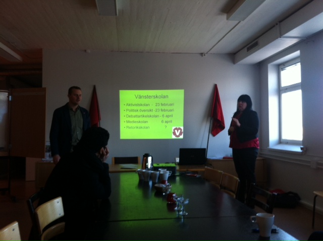 För partiets och styrelsens räkning presenterade Forsberg och Hamberg Vänsterpartiets nuläge och framtid, såväl nationellt och lokalt. Mycket är på gång och här är samarbetet mellan partiföreningen och Ung Vänster viktig.- Det är alltid lika roligt att träffa vårt ungdomsförbund. Nu ska vi utöka samarbetet och dialogen med Ung Vänster och redan idag bjöd vi in till ett antal utbildningstillfällen under året samt till en utökad dialog.  Redan imorgon träffas vi igen, säger Maria Forsberg.