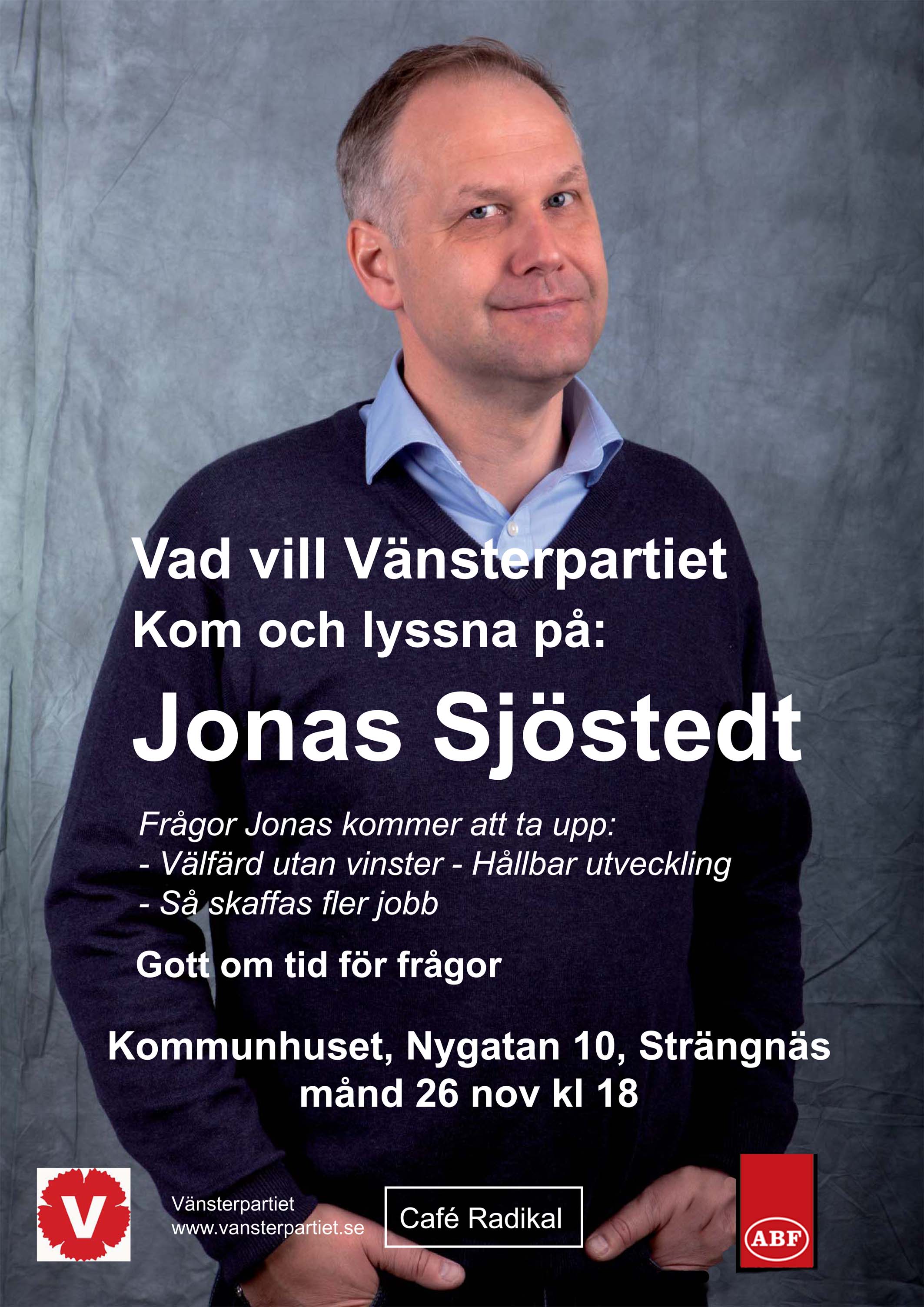 – Jonas Sjöstedt har gästat Eskilstuna två gånger unger året och dragit 250 personer till dessa tillfällen i våra arrangemang.